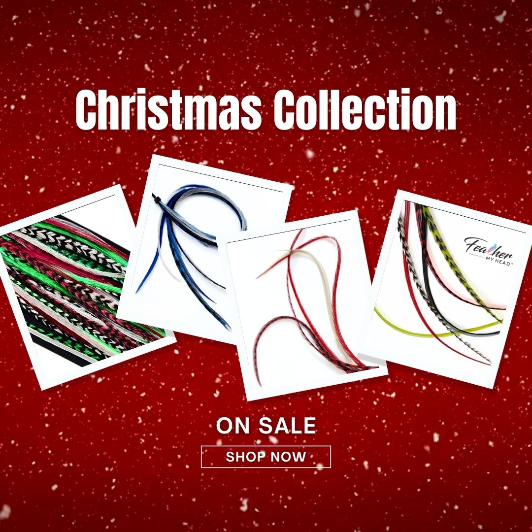 Celebrate the season with our limited-edition holiday hair feather extensions—premium, vibrant, and crafted in the USA. Available in extra-long lengths for standout holiday style.