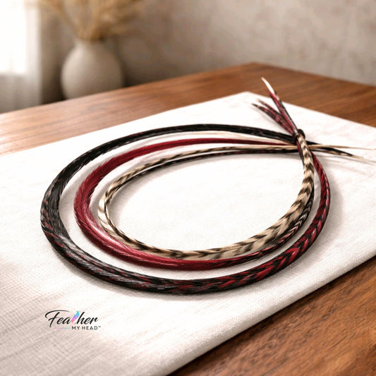 Scroll through our full bundle collection — including curated Designer Sets, hand-dyed Rainbow Packs, and custom Build-Your-Own feather mixes. Each set features salon-quality, long-lasting feathers in natural or vivid colors.