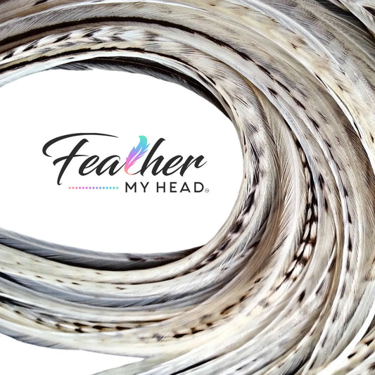 - 3 grizzly striped feathers