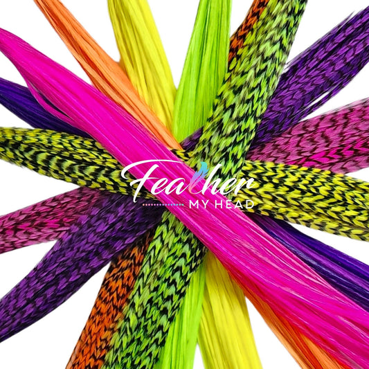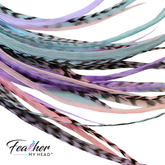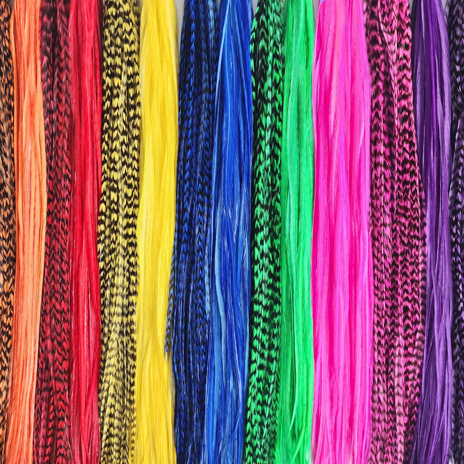 The possibilities are truly endless, so you can create the perfect custom look for yourself or as a gift. Choose from grizzly striped or non-grizzly striped feathers and select your preferred length from 10 inches to very long over 16 inches. With each feather selected by you, you can create a design that's truly one of a kind and adds a pop of color and texture to your hair.