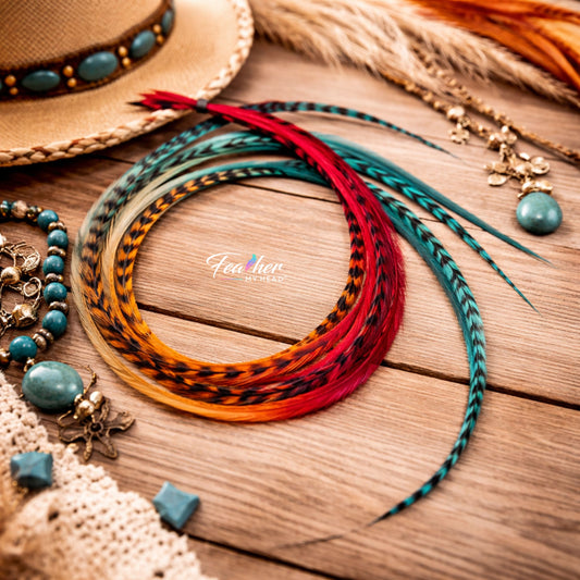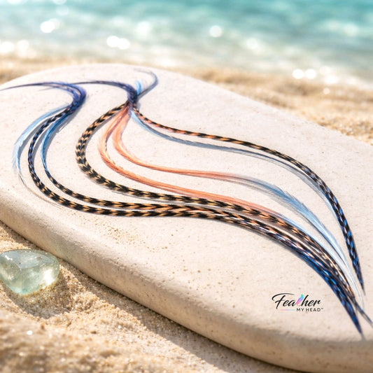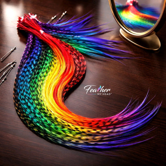 Bright, playful, and full of personality, our Rainbow Hair Feathers collection brings together real feather hair extensions in hand-dyed multicolor blends, tie-dye styles, and vivid statement sets designed to stand out. From soft ombré fades to bold rainbow color mixes, these feathers are made for festival looks, summer hair, Pride outfits, and everyday color lovers. All styles are available in 6-piece and 16-piece sets, with long length options for added movement, visibility, and color.