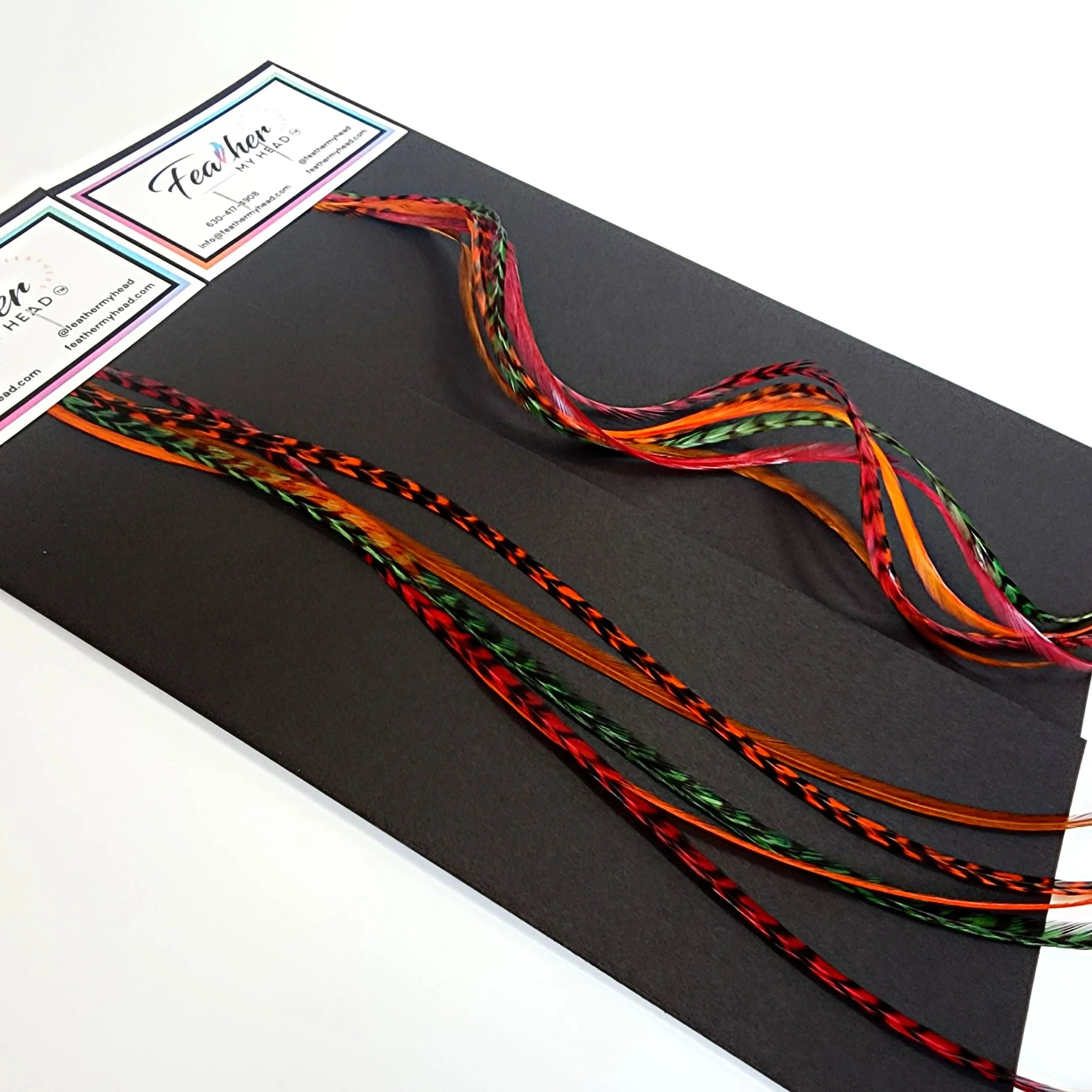 Celebrate the season with our limited-edition holiday hair feather extensions—premium, vibrant, and crafted in the USA. Available in extra-long lengths for standout holiday style.