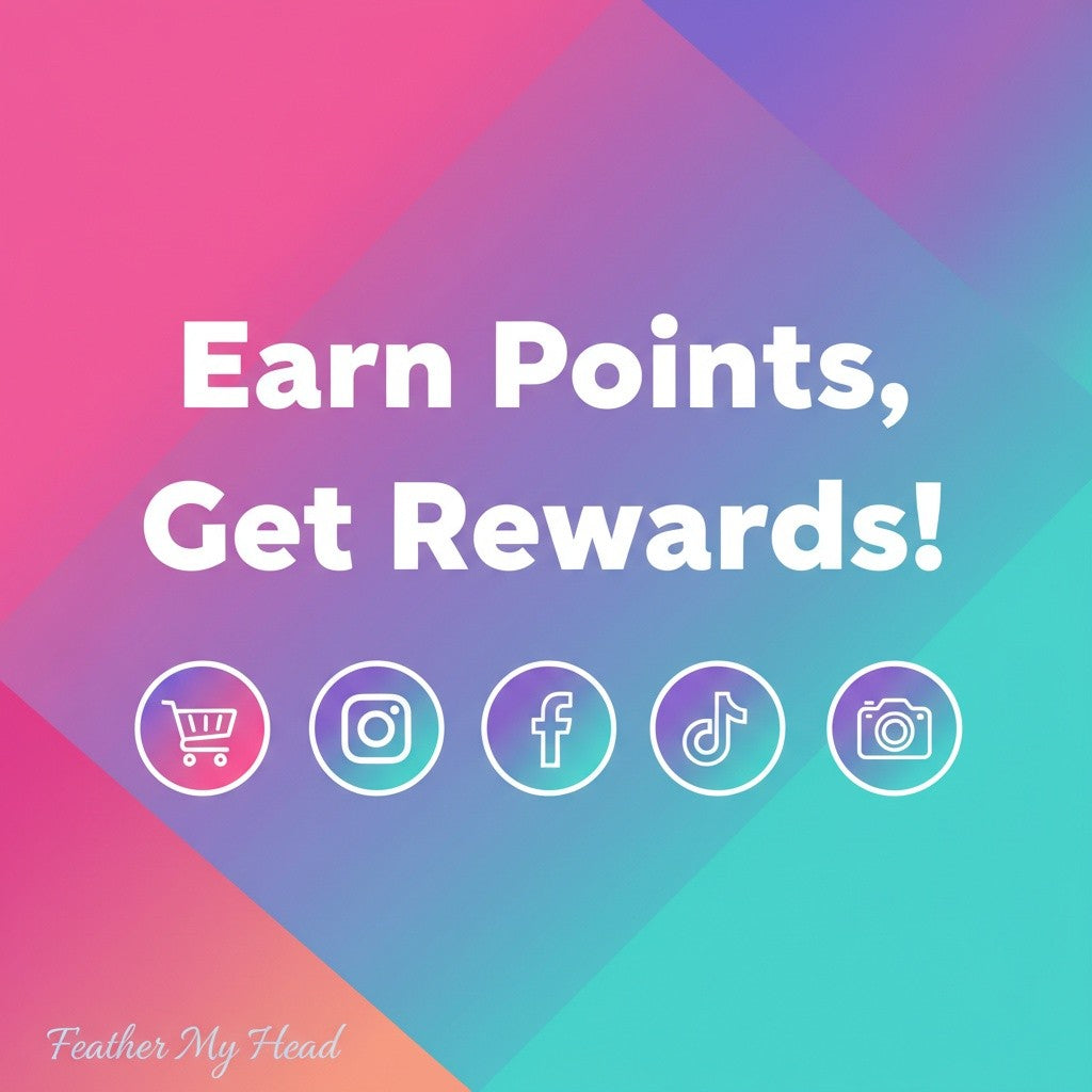 Every purchase, post and share earns you points towards exclusive Feather My Head Rewards