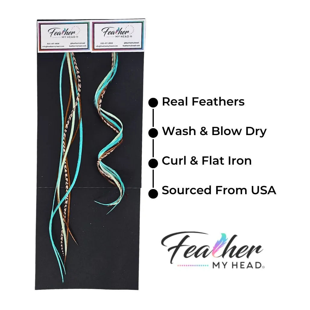 Choose a set of 6 or 16 natural feathers, hand-dyed in the USA with salon-quality color and texture. Each feather adds a hint of wanderlust to your style—perfect for festivals, road trips, or everyday boho flair. Lightweight and easy to apply, these feathers blend beautifully into any hair type and can be curled, straightened, or styled however you like.